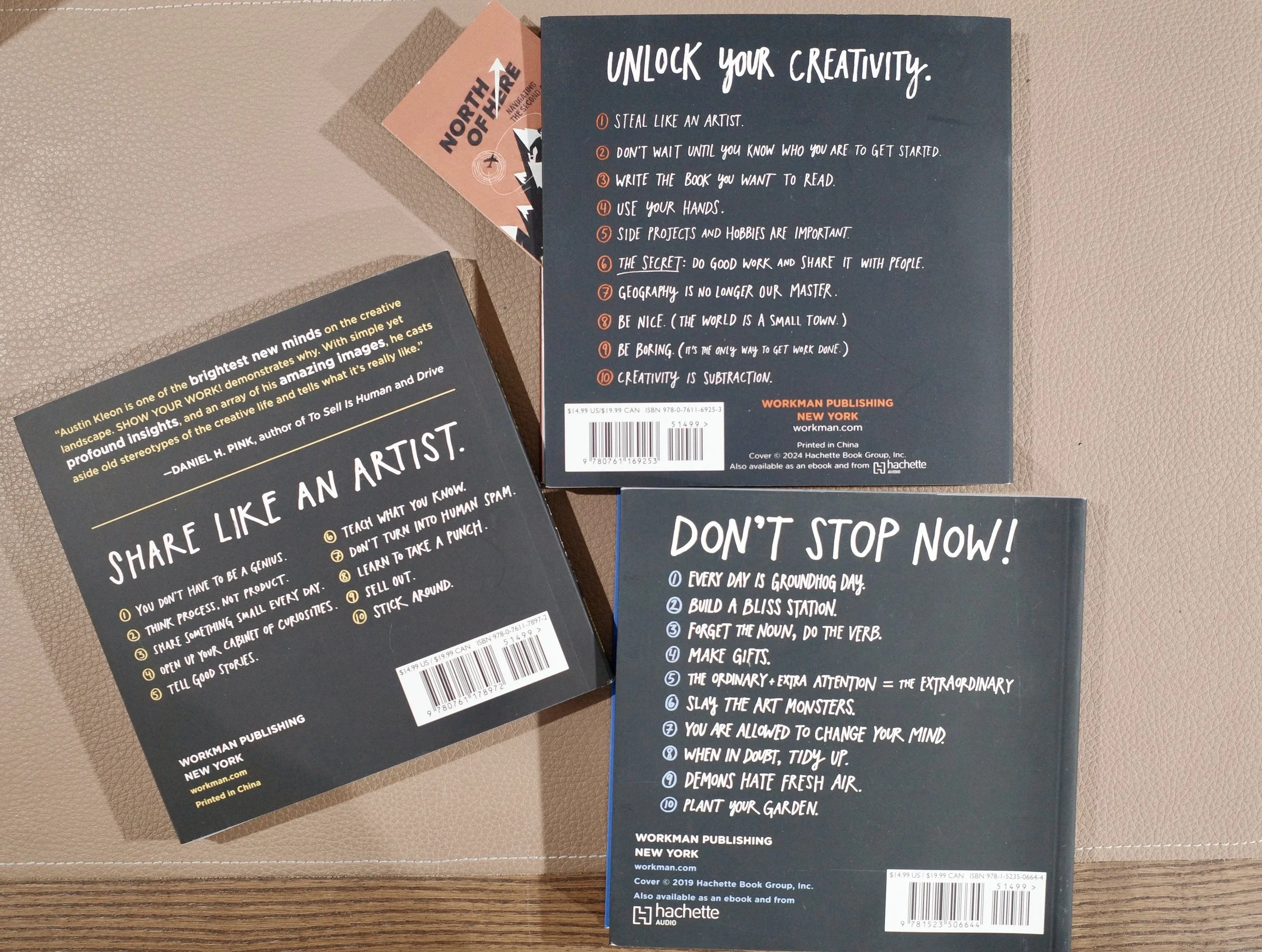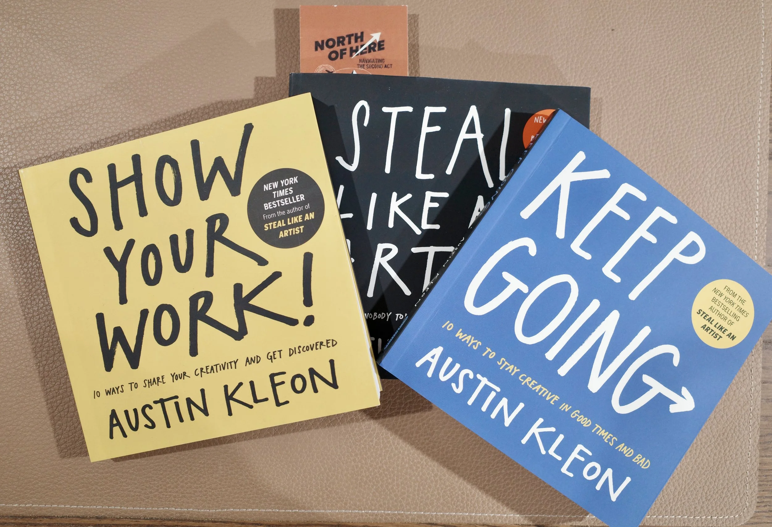 The Austin Kleon trilogy: Steal Like An Artist, Show Your Work, and Keep Going—essential reading for creative development (Image: Damien Wilkinson)